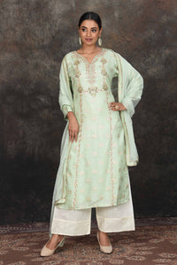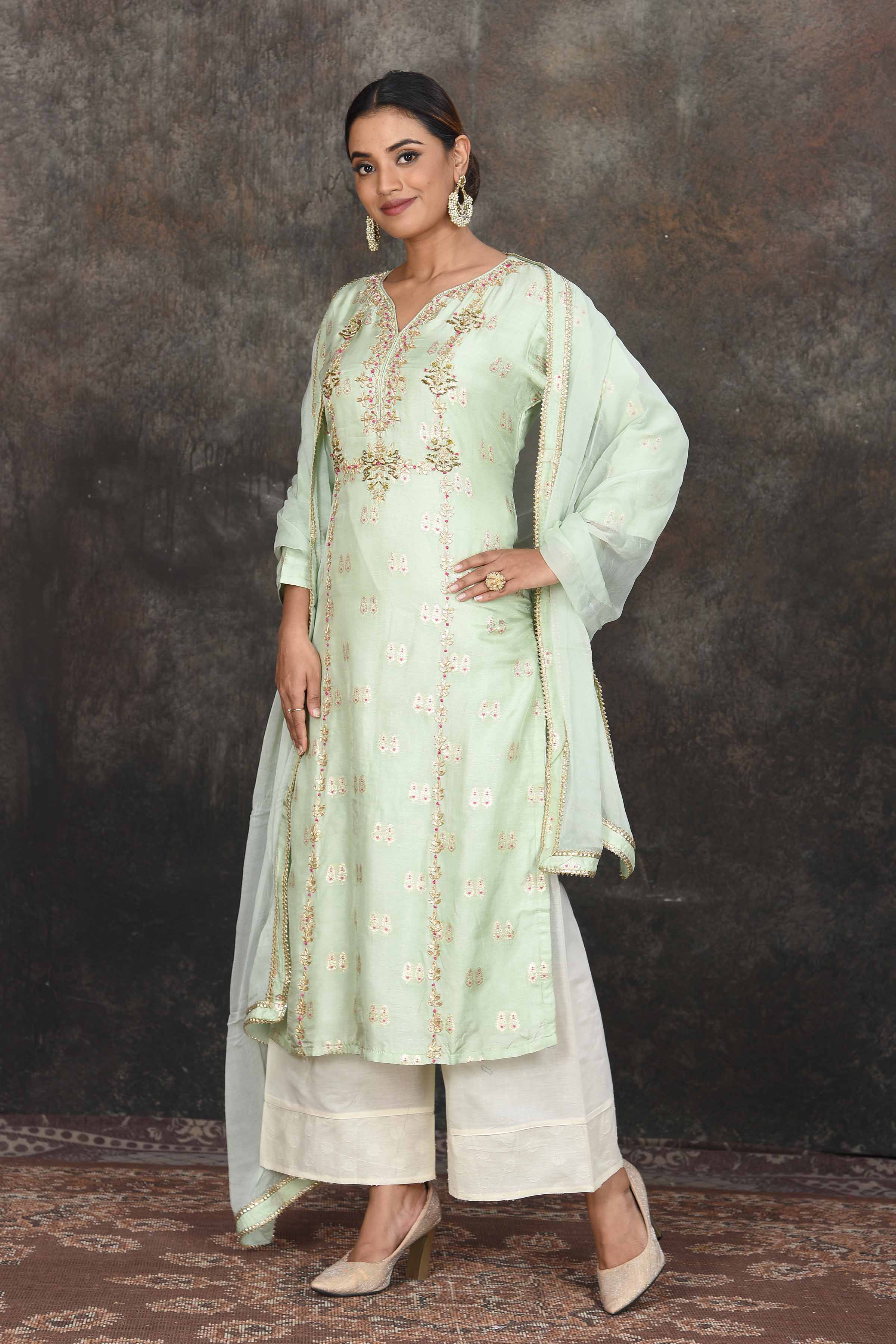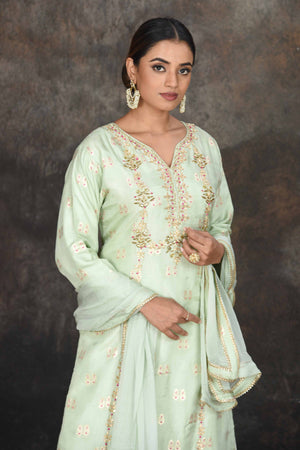 503237 Mint Green Embroidered Palazzo Suit with Dupatta