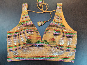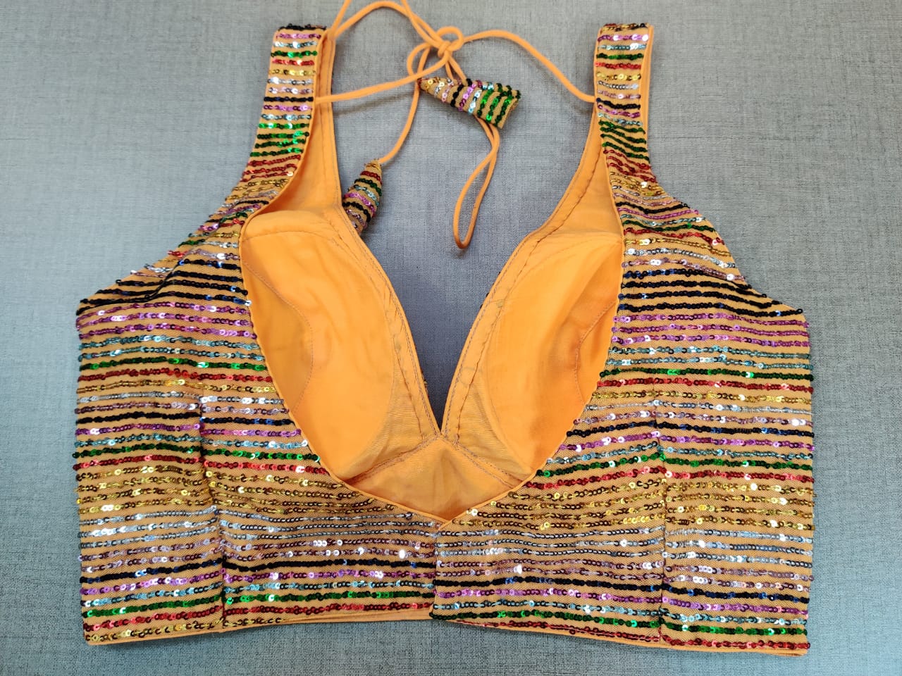 Stunning multicolor sequin work sleeveless saree blouse. Buy designer blouse in USA from Pure Elegance.