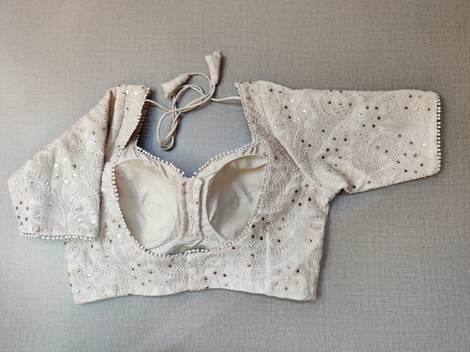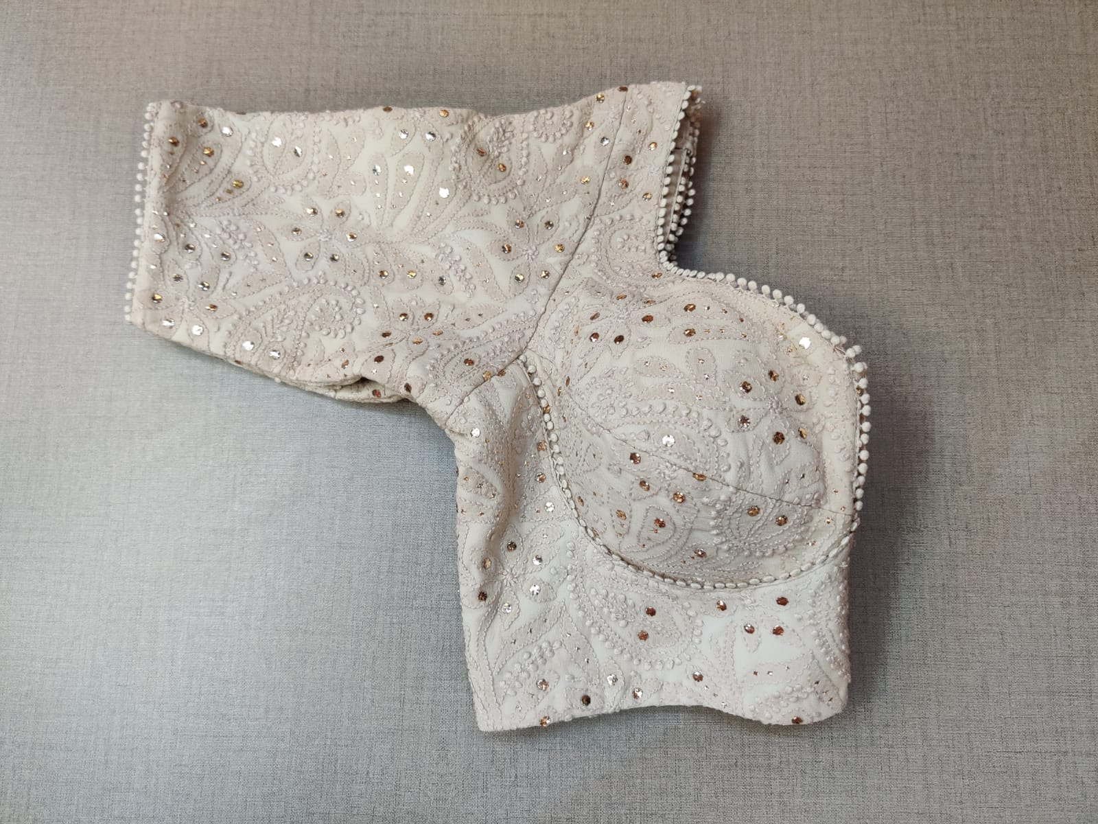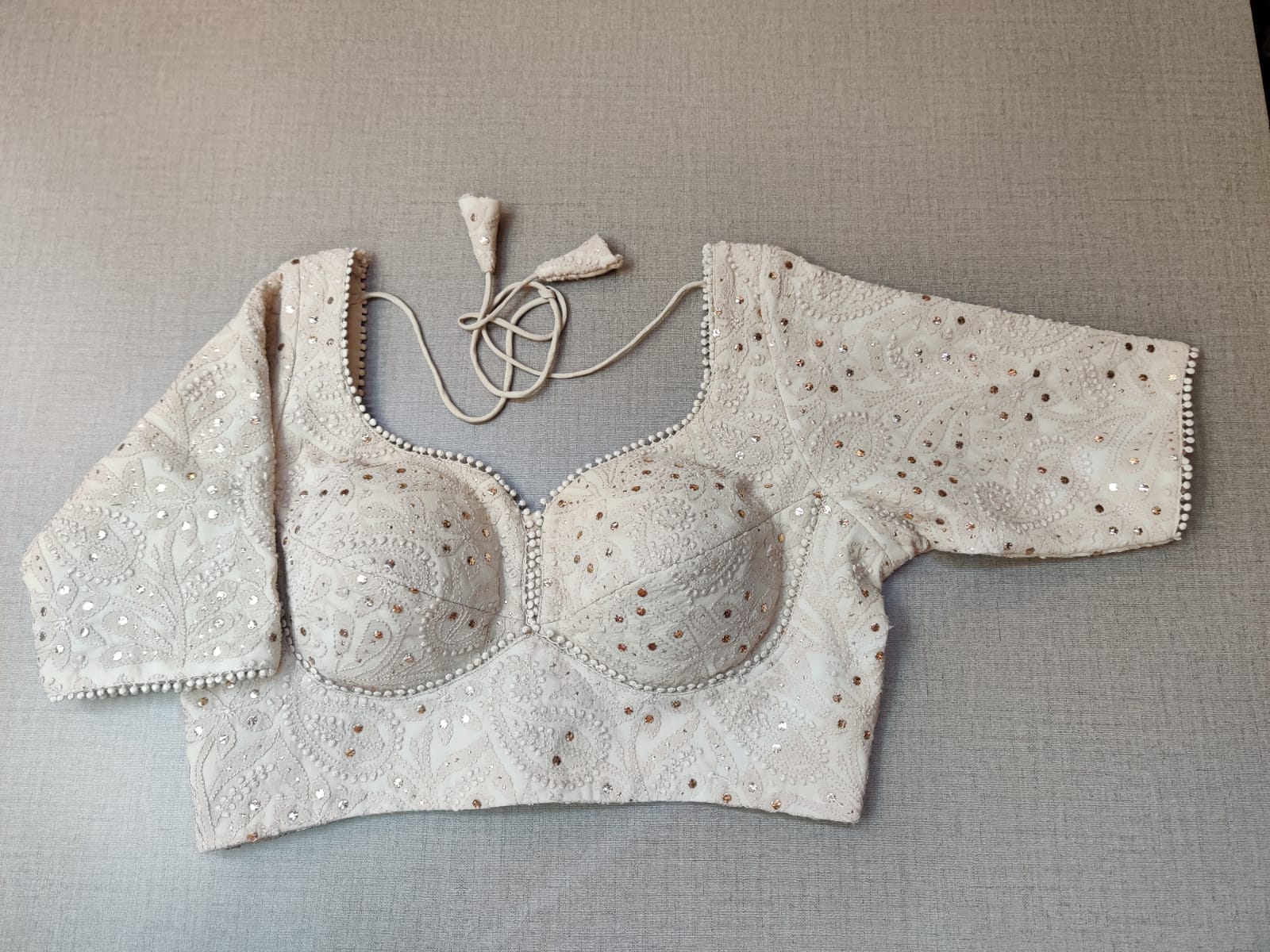 Stunning off-white embroidered gota work saree blouse. Buy designer blouse in USA from Pure Elegance..