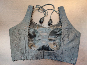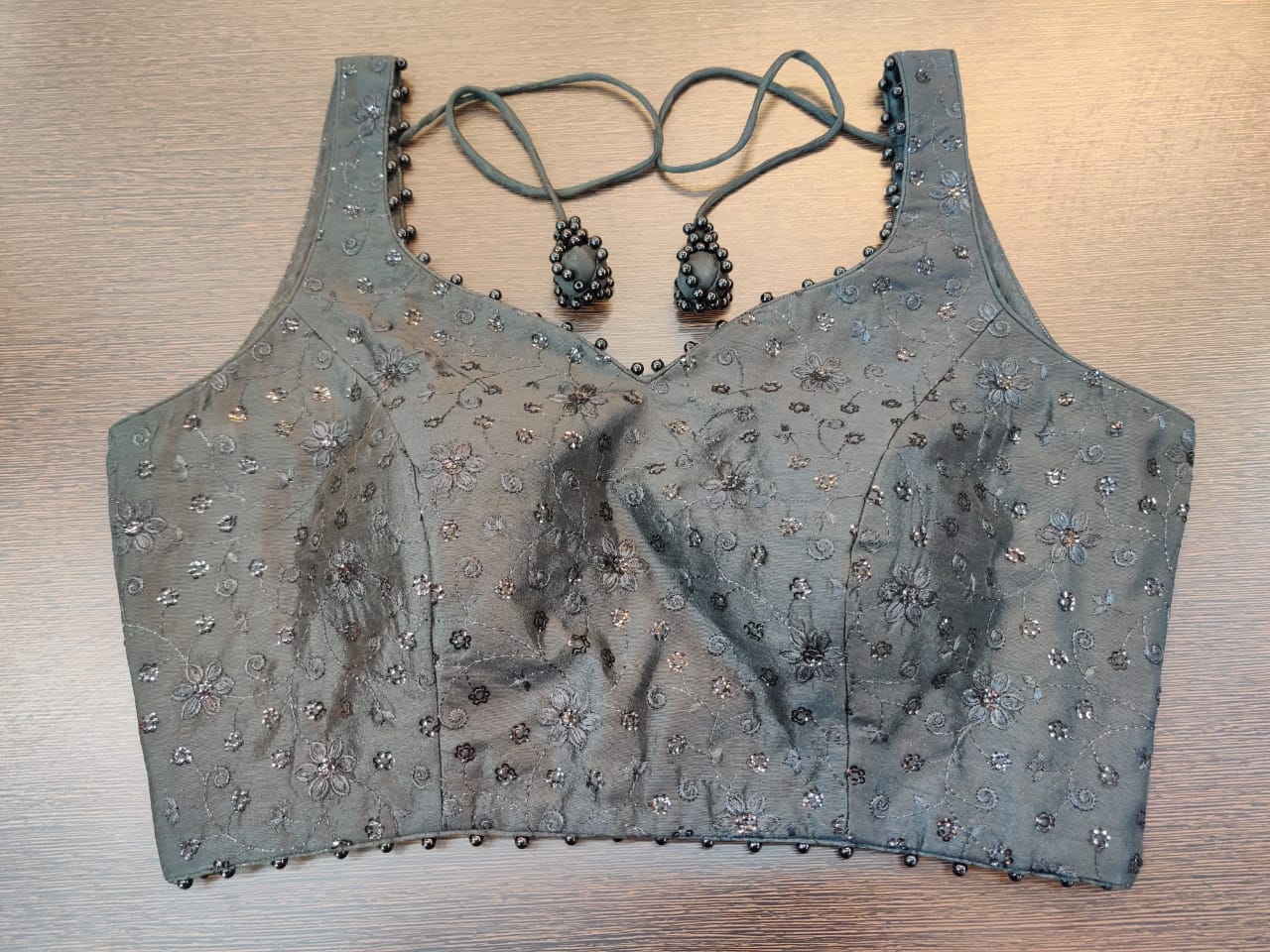 Gorgeous black embroidered designer sleeveless saree blouse. Shop designer saree blouse online in USA from Pure Elegance.