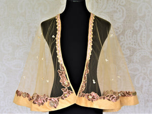 401504 Cream Hand Embroidered Net Designer Cape Blouse