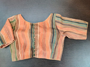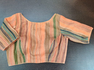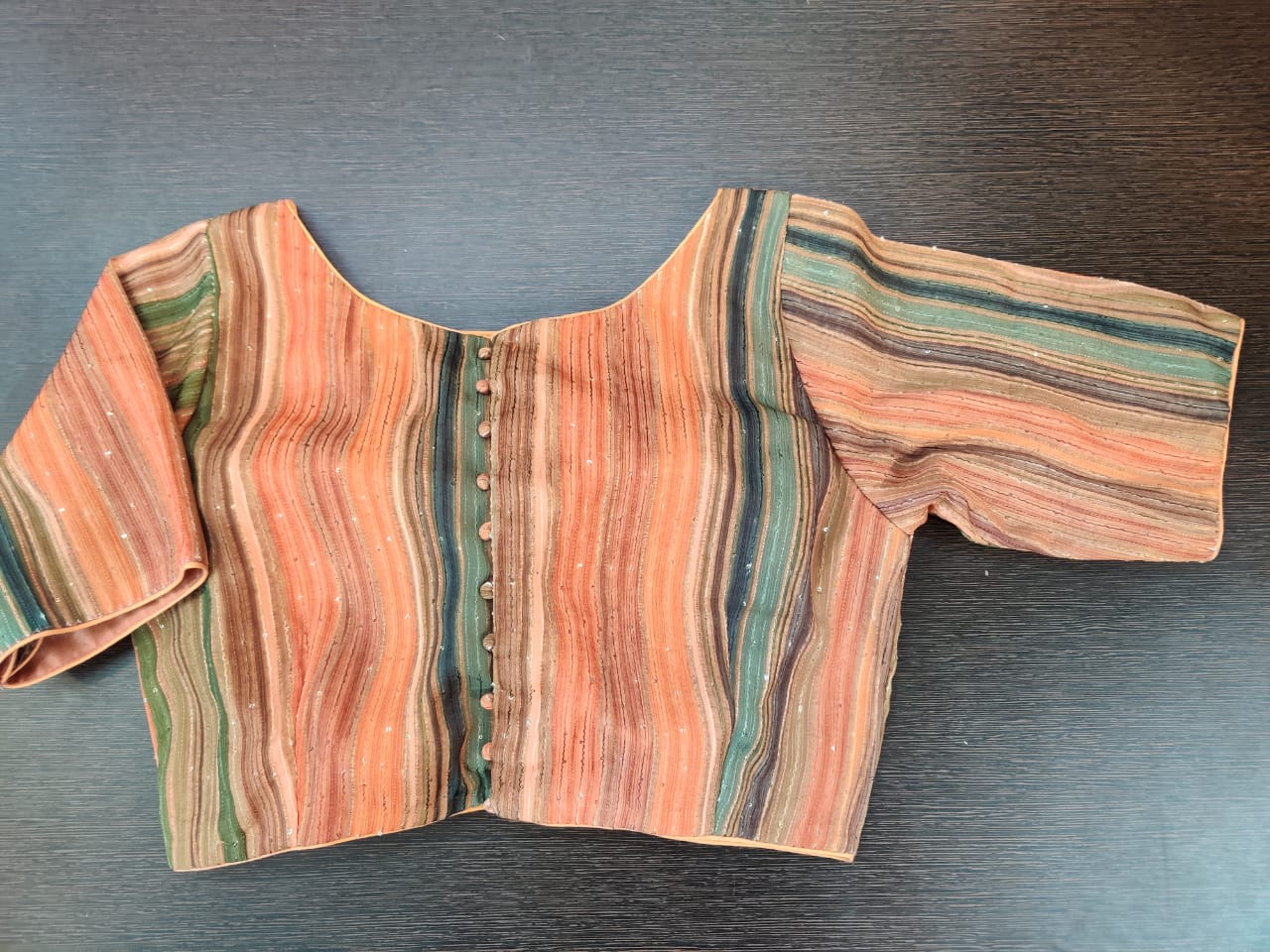 Stunning orange and green stripes embellished saree blouse. Buy designer blouse in USA from Pure Elegance.