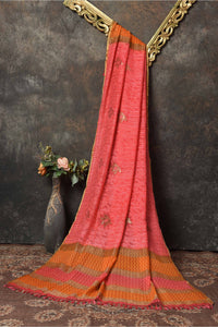 404471 Pink Banarasi Weave Dupatta with Orange Pink Border