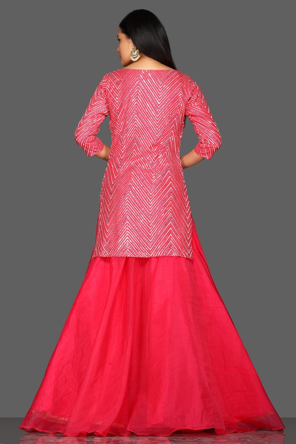 Beautiful pink embroidered skirt set is a perfect ensemble for mehendi and sangett! It comes with a matching dupatta. Shop online from Pure Elegance.