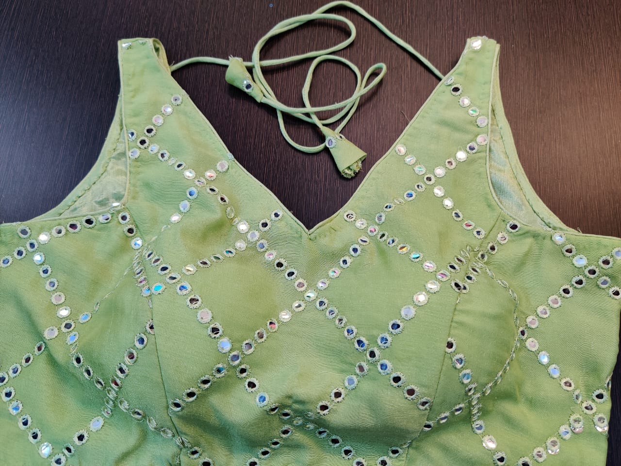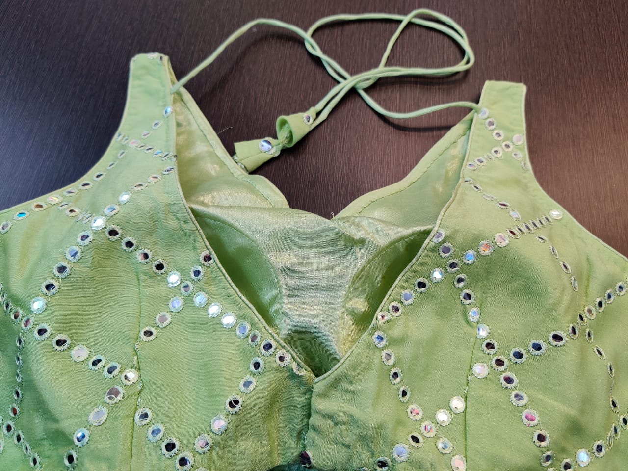 Beautiful black mirror work sleeveless sari blouse. Buy online from Pure Elegance