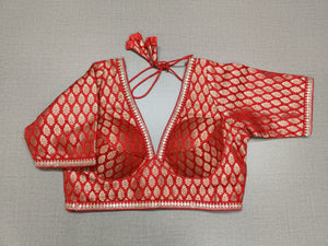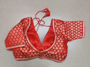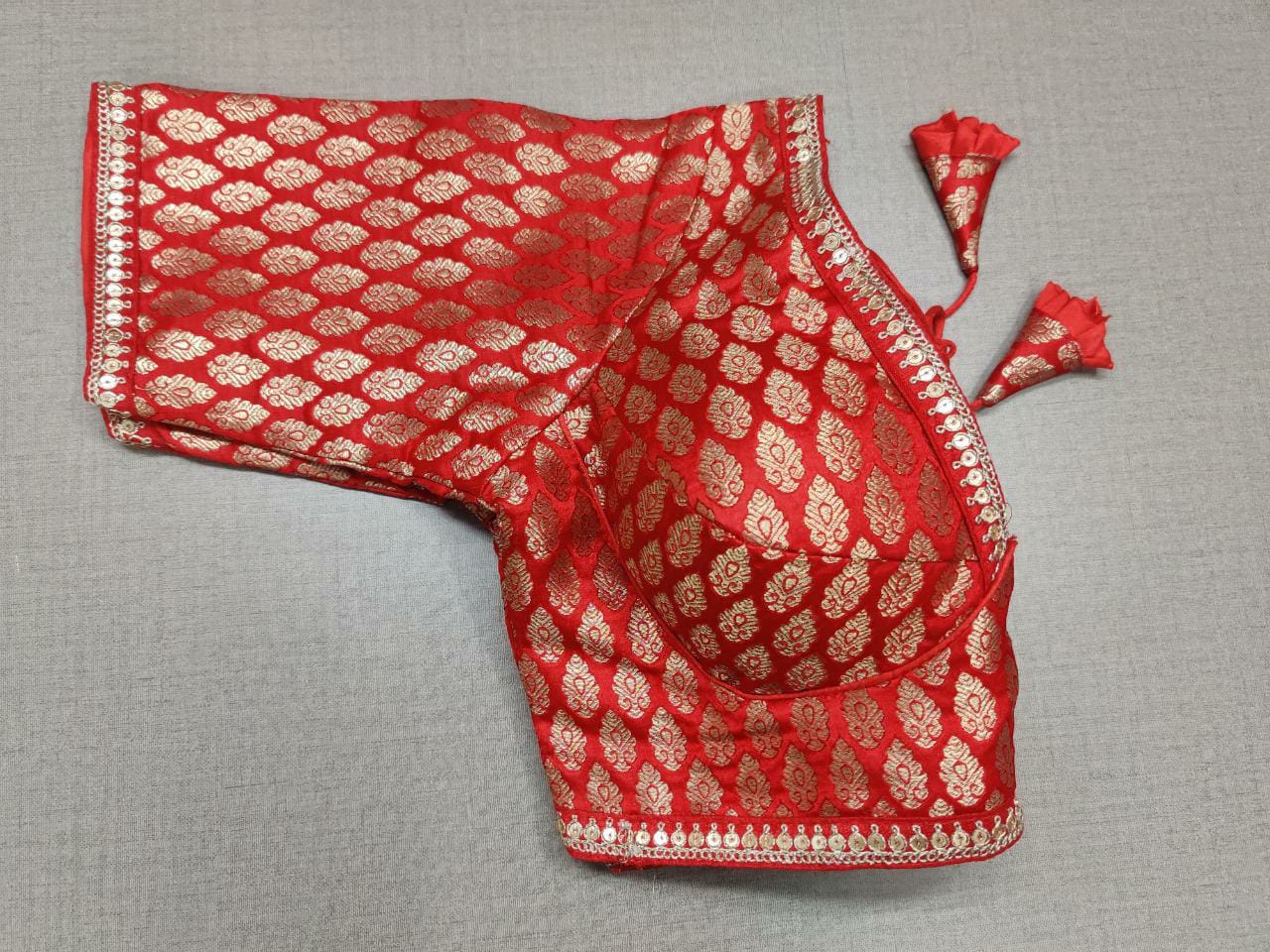 Pair your summer sarees with this beautiful red Banarasi saree blouse with sequin for a perfect traditional look! Buy designer blouse in USA from Pure Elegance..