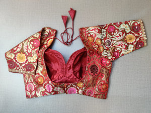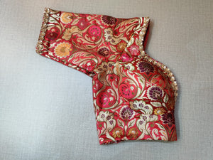 Exquisite red kalamkari printed saree blouse. Buy readymade saree blouses in USA from Pure Elegance..