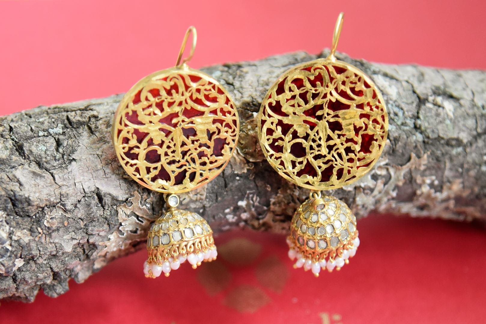 Elegant silver gold plated earrings with jhumki drops from Amrapali. Shop gold plated jewelry online in USA from Pure Elegance.