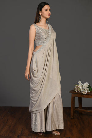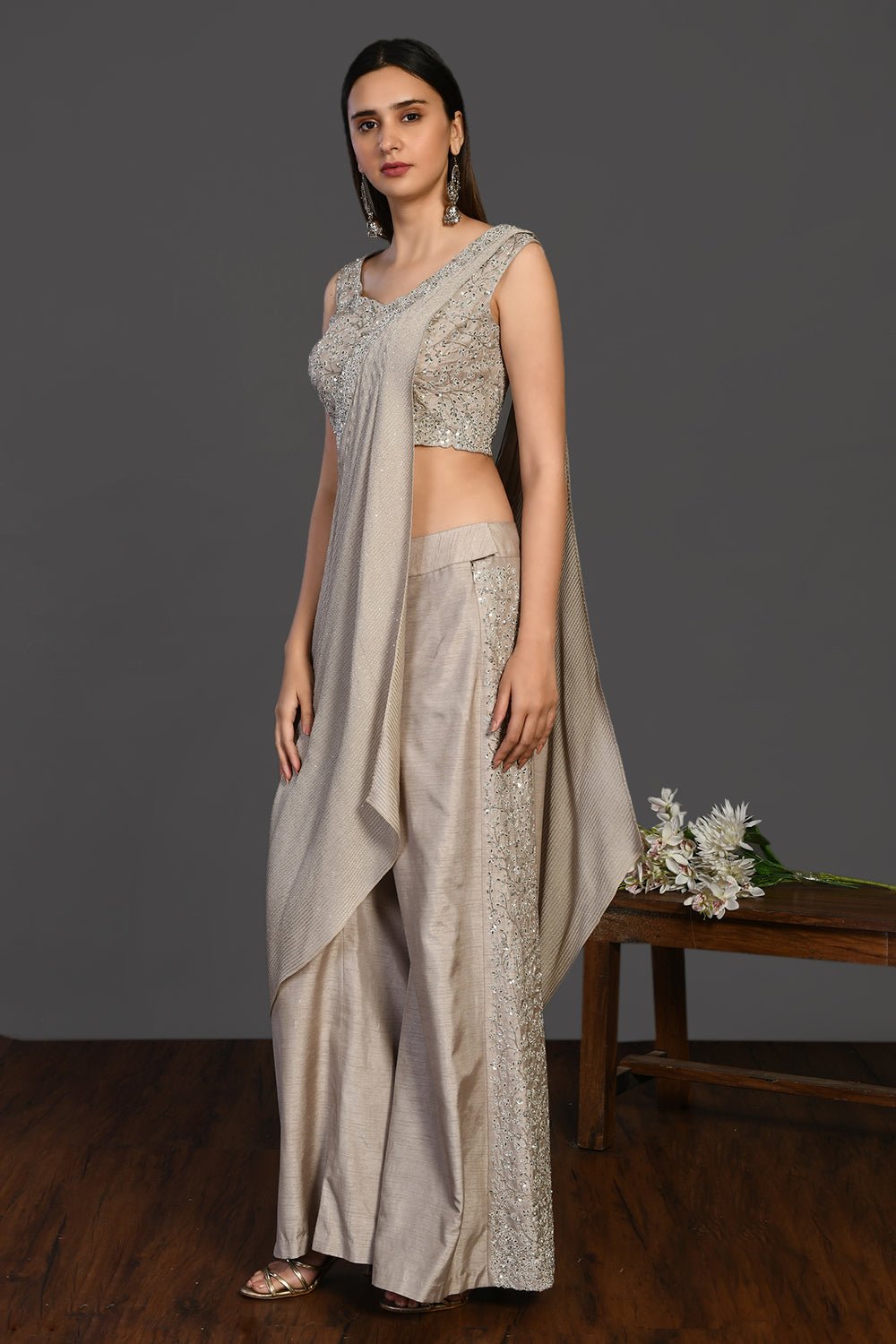Beautiful beige embroidered indo-western dress is a perfect pink for parties and festive occasions! Shop online from Pure Elegance.