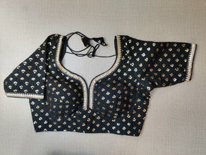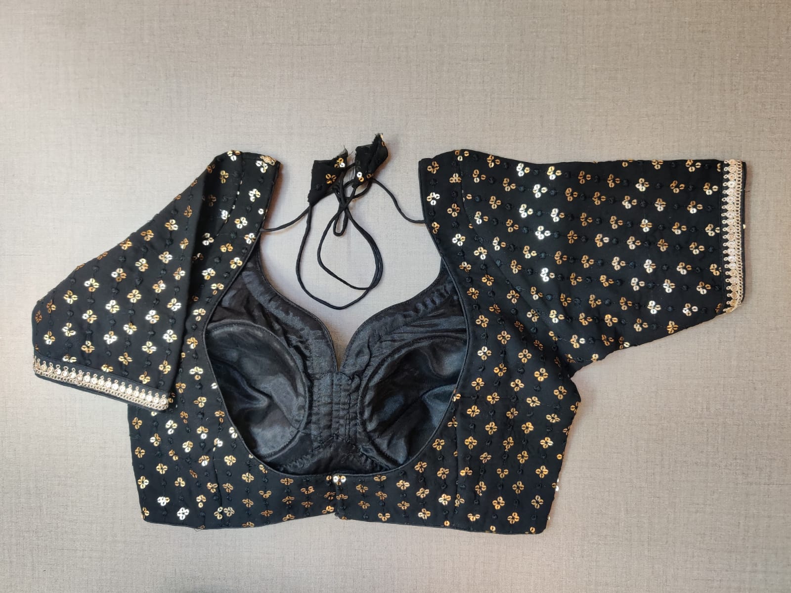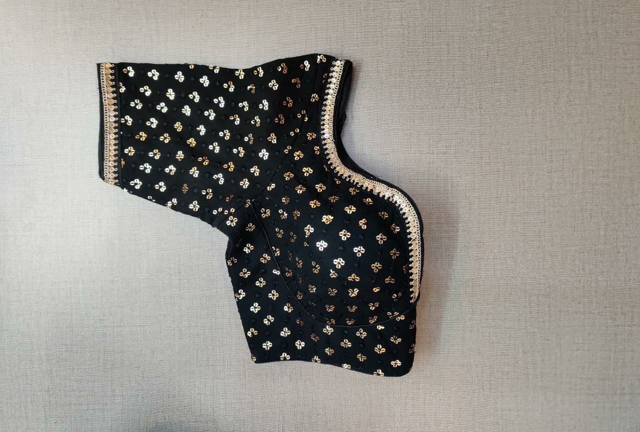 Beautiful black embroidered padded saree blouse. Buy designer blouse in USA from Pure Elegance.