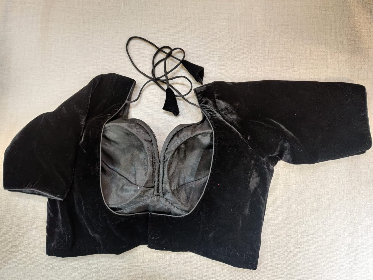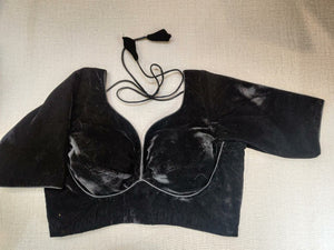 Beautiful black velvet readymade saree blouse. Buy designer blouse in USA from Pure Elegance.