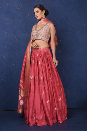 Turn heads at weddings in this beautiful blush pink embroidered lehenga with dupatta. Shop designer suits and dresses in USA from Pure Elegance.