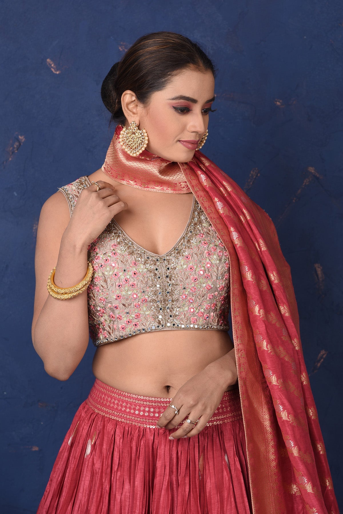 502790 Blush Pink Embroidered Lehenga with Dupatta