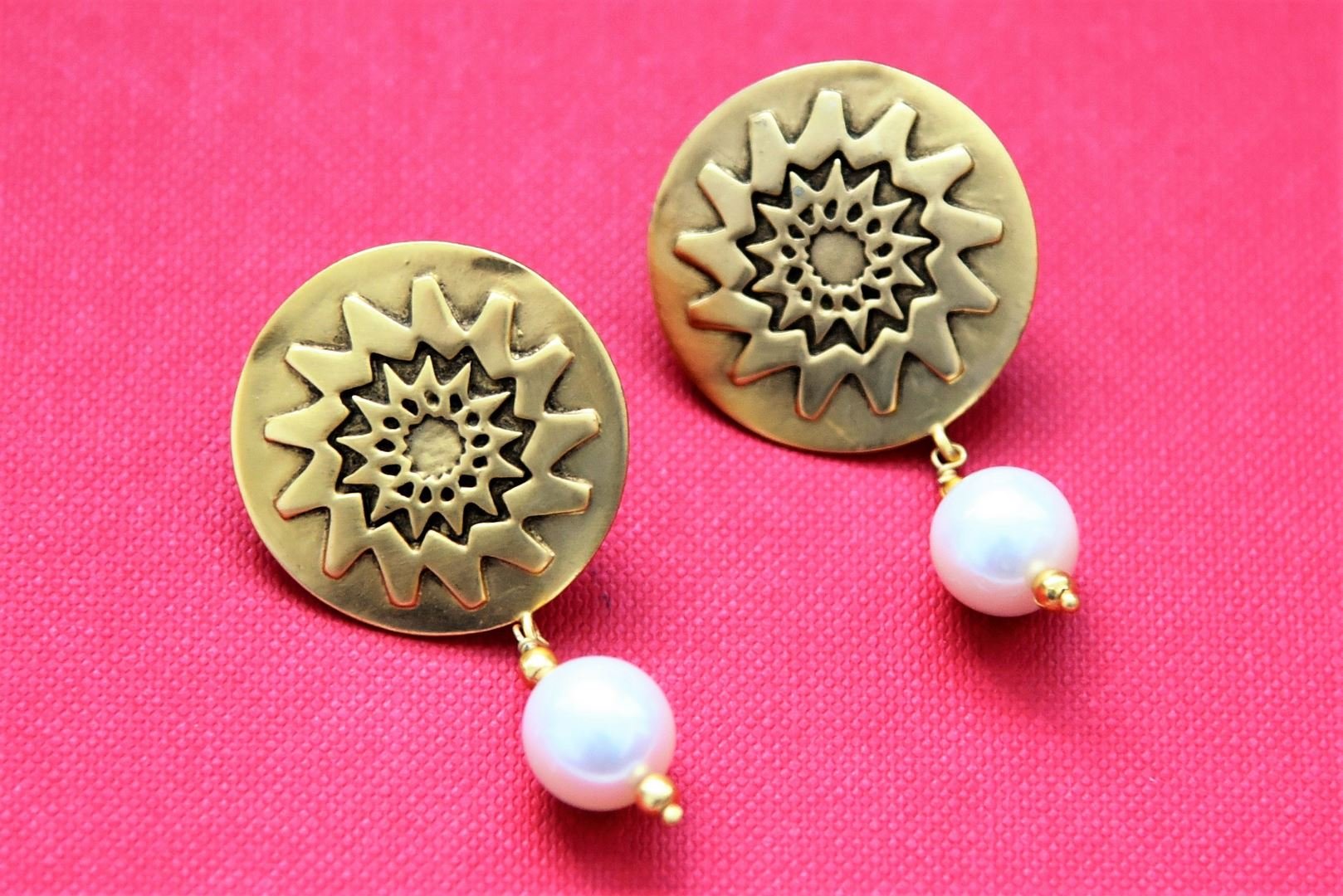 Beautiful gold plated studs with pearl drop. Shop Amrapali jewelry in USA from Pure Elegance.
