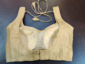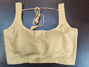 Beautiful golden sleeveless sari blouse. Buy designer blouse in USA from Pure Elegance.