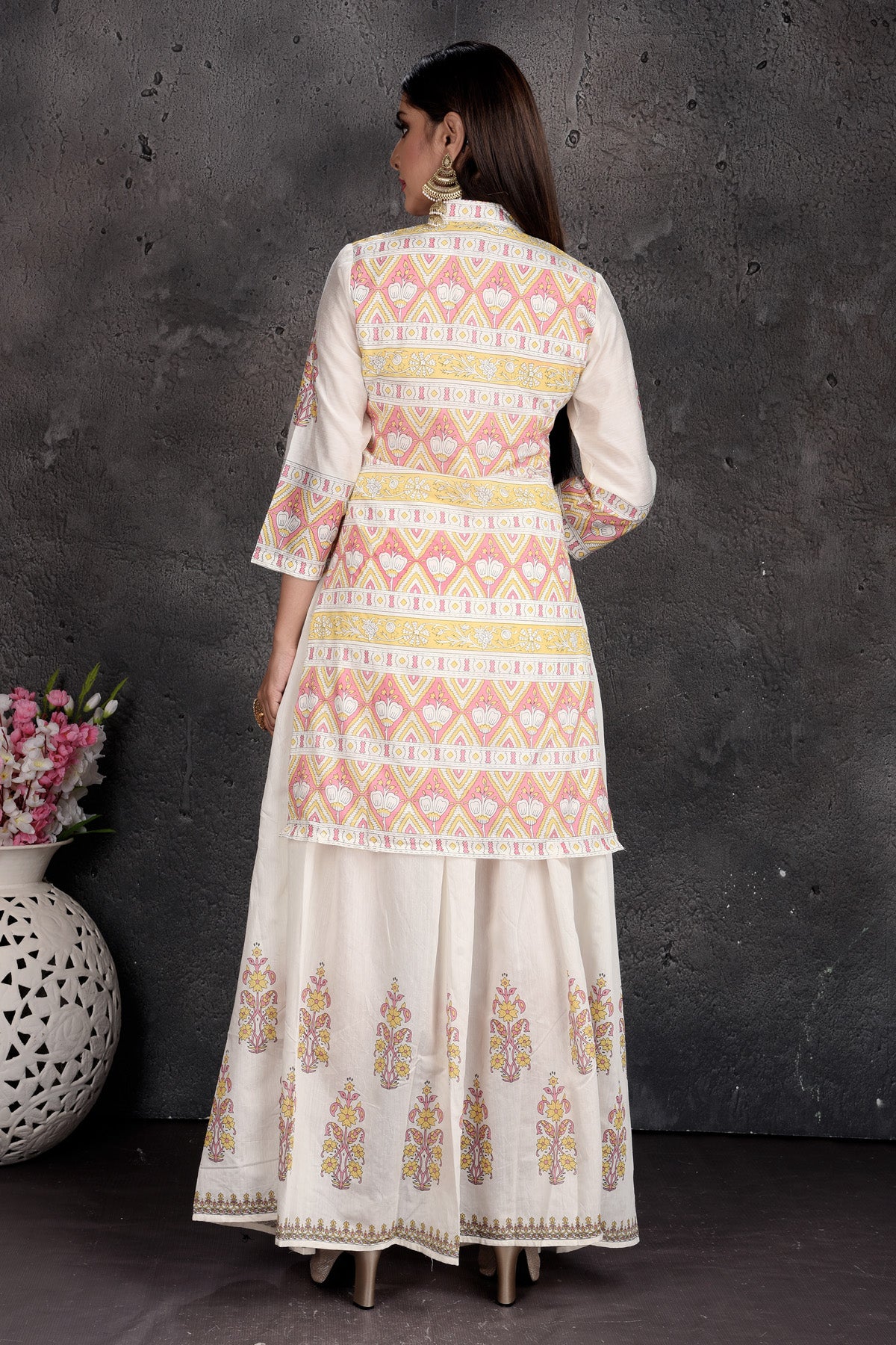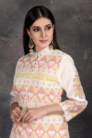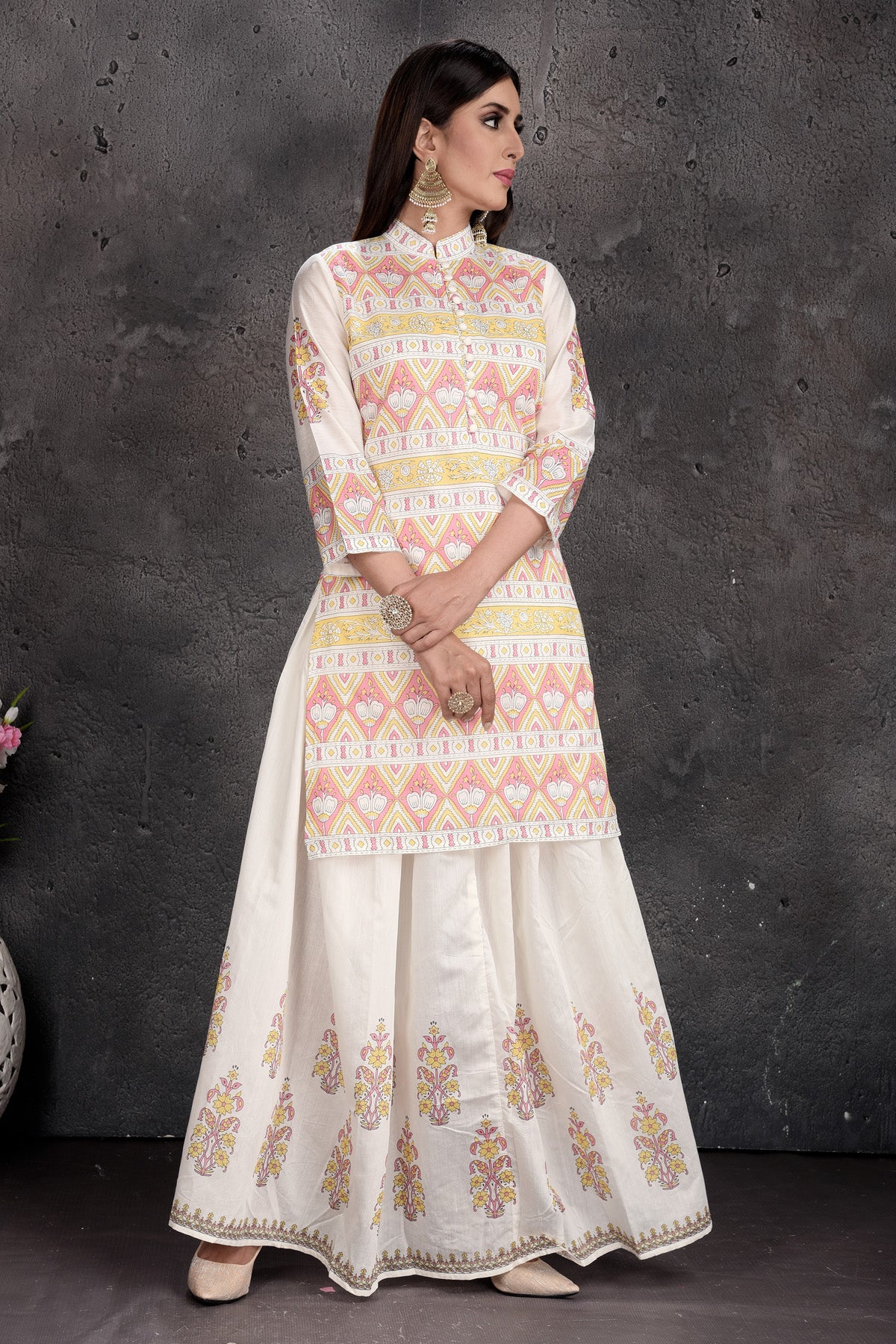 502978 Off-White Printed Skirt with Kurti