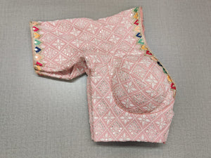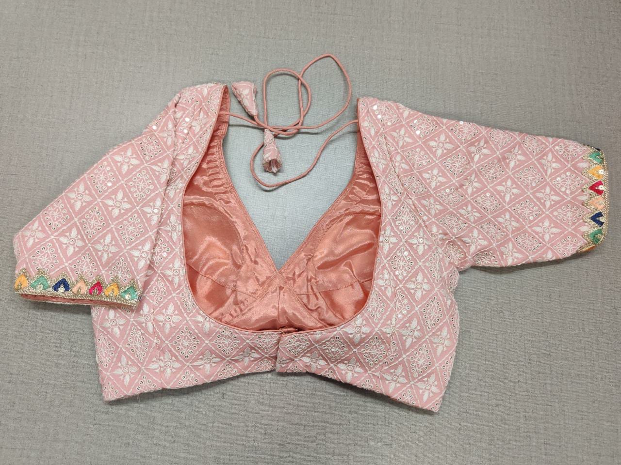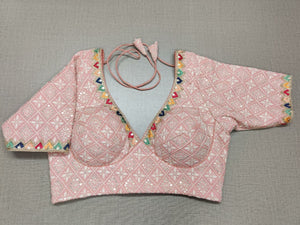Pair your summer sarees with this this beautiful peach embroidered choli-cut sari blouse for a perfect traditional look! Buy designer blouse in USA from Pure Elegance..
