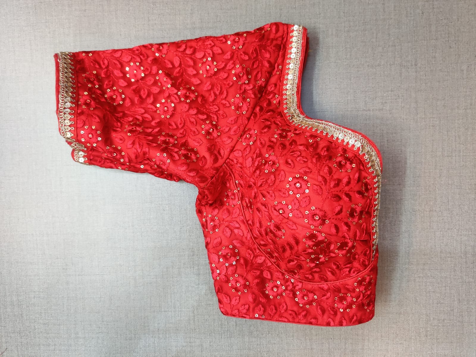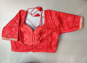 Beautiful red embroidered net designer saree blouse. Buy designer blouse in USA from Pure Elegance.