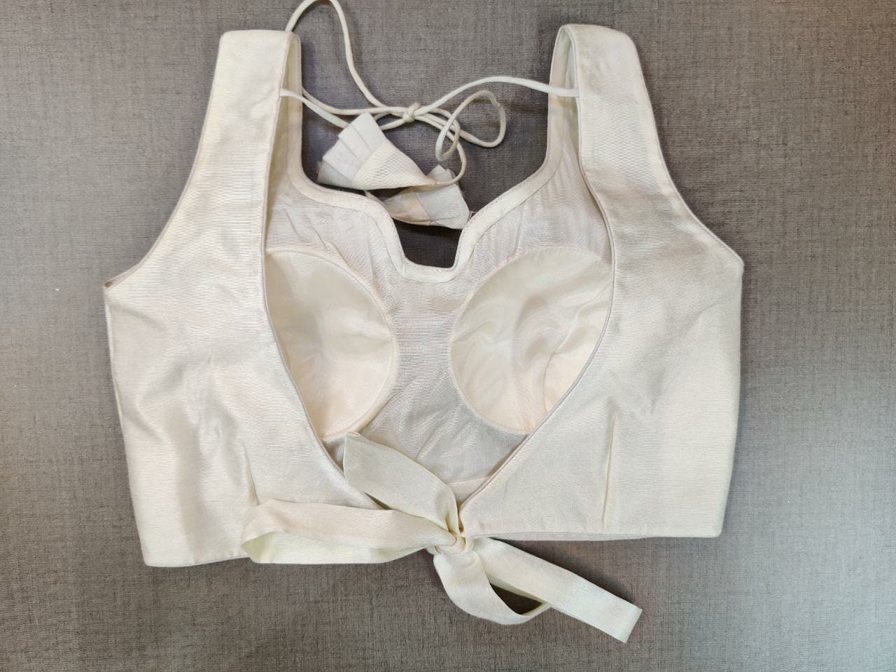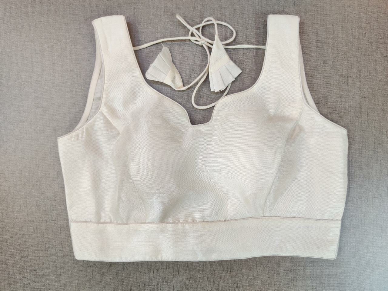 Beautiful solid white sleeveless saree blouse. Buy designer blouse in USA from Pure Elegance.