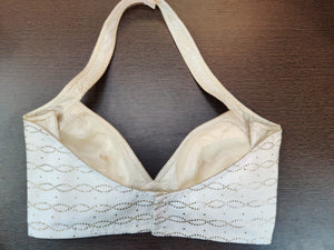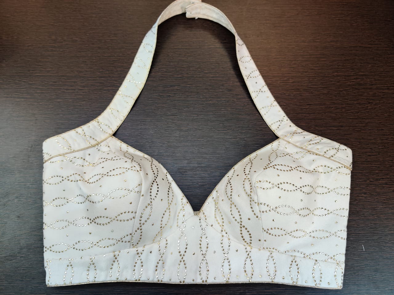 Stunning White embellished halter neck saree blouse. Buy designer blouse in USA from Pure Elegance.
