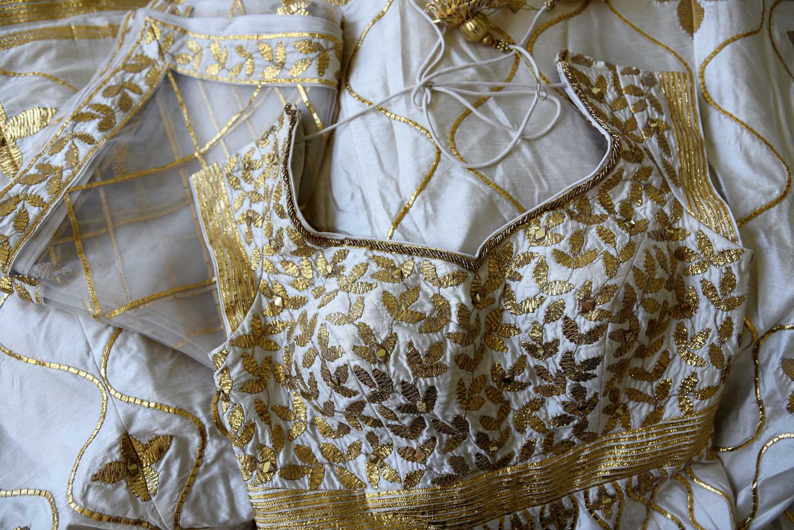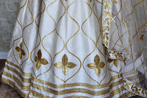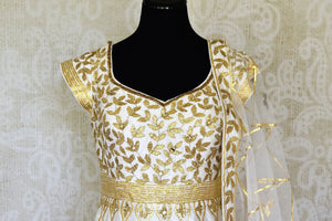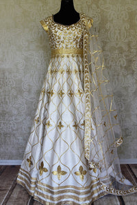 Look splendid at weddings and special occasions with this white gota patti embroidery silk floor length Anarkali with dupatta. Buy online at Pure Elegance or visit our store in USA.