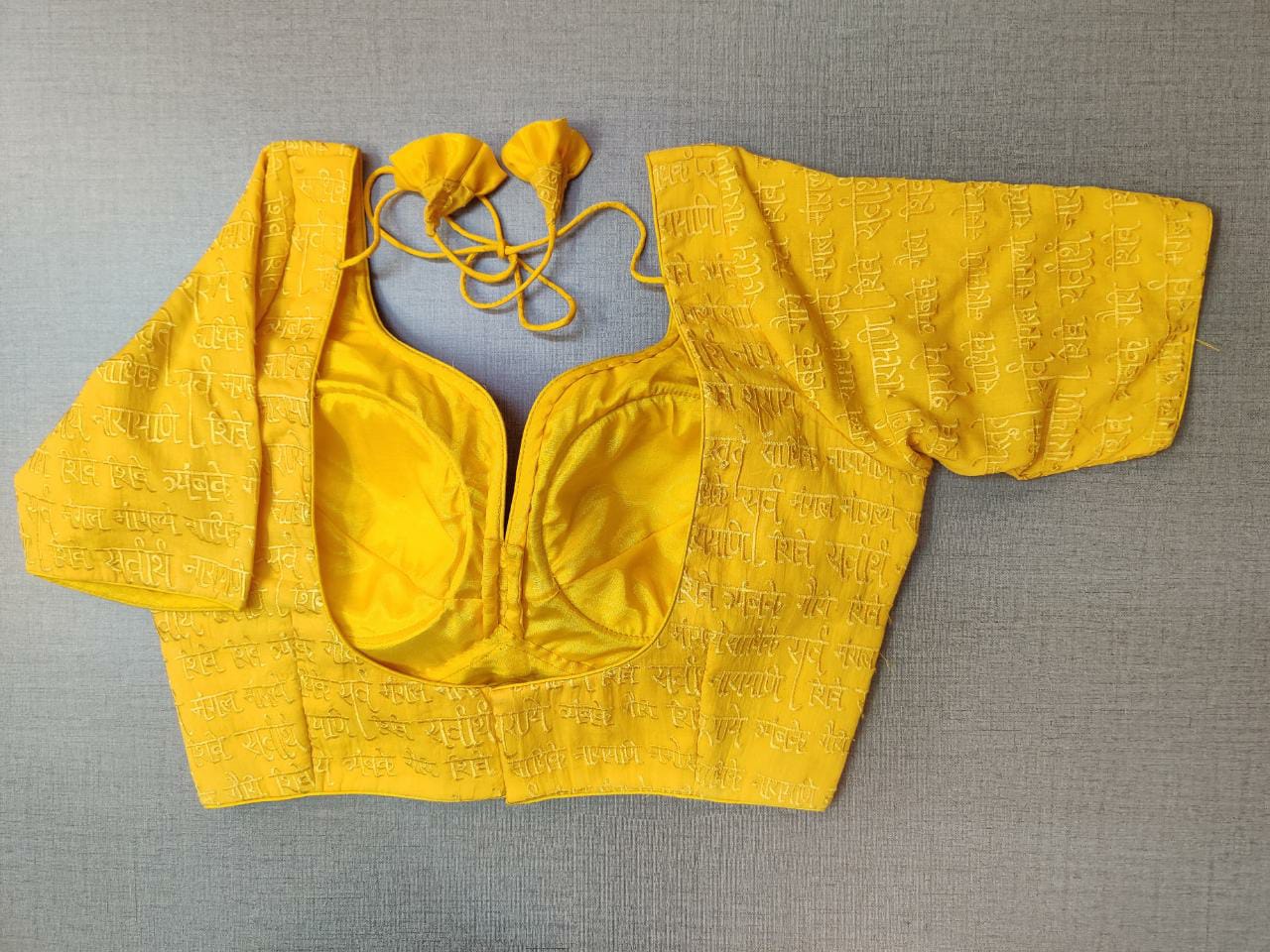 Beautiful yellow designer saree blouse with embroidery . Buy designer blouse in USA from Pure Elegance.