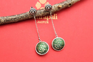 Beautiful silver earrings with green fabric ball. Shop silver jewelry in USA from Pure Elegance.