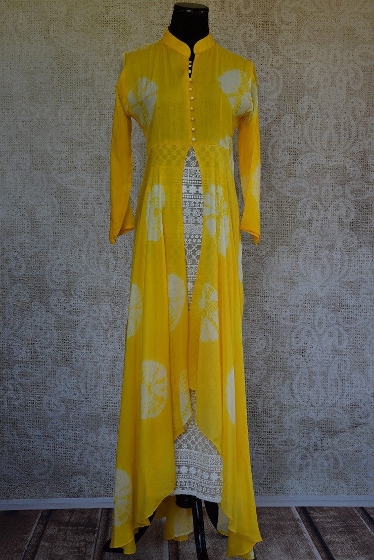 401681 Yellow Ethnic Indian Tie Dye Dress by Pure Elegance With Lace